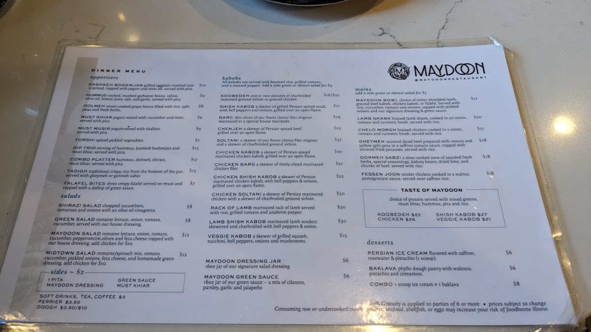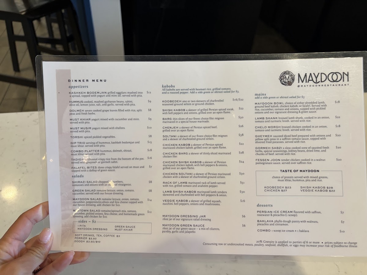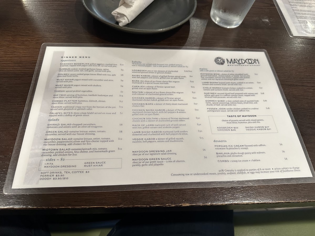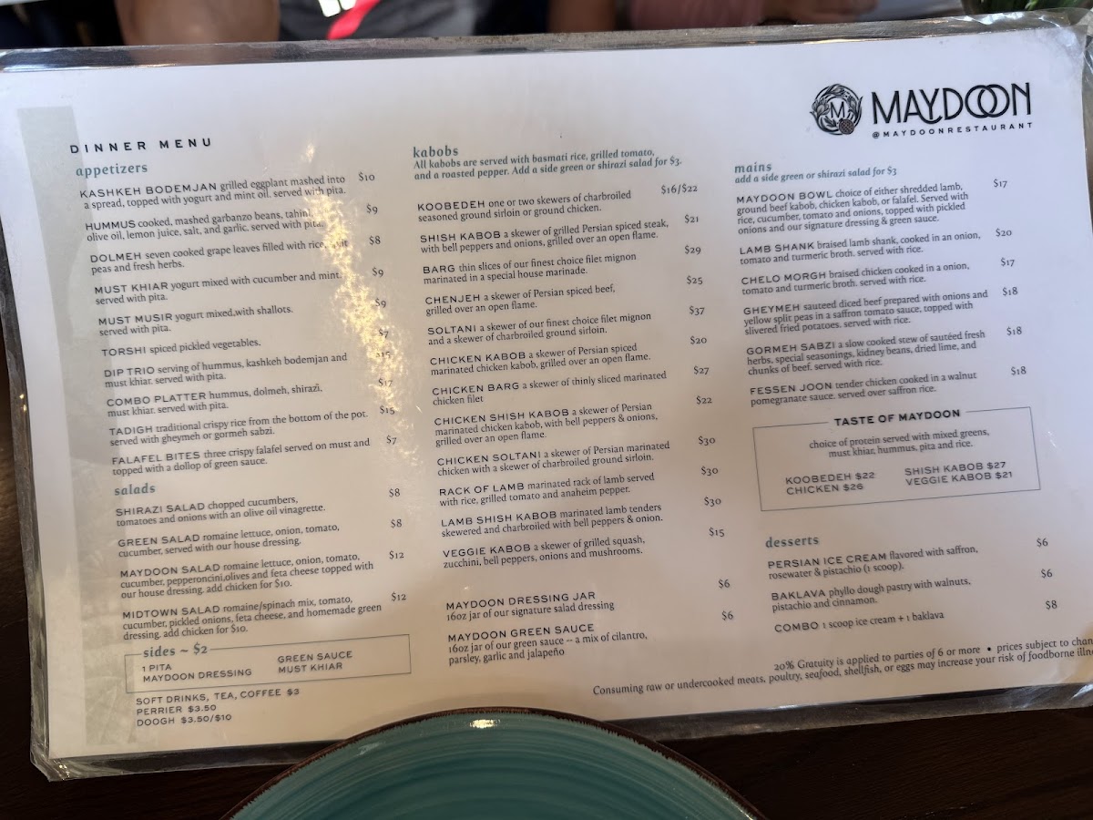 Maydoon Restaurant Menu