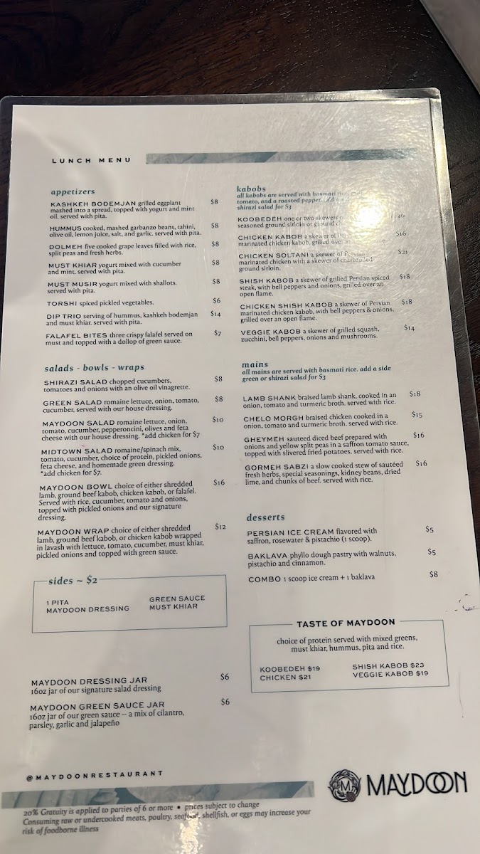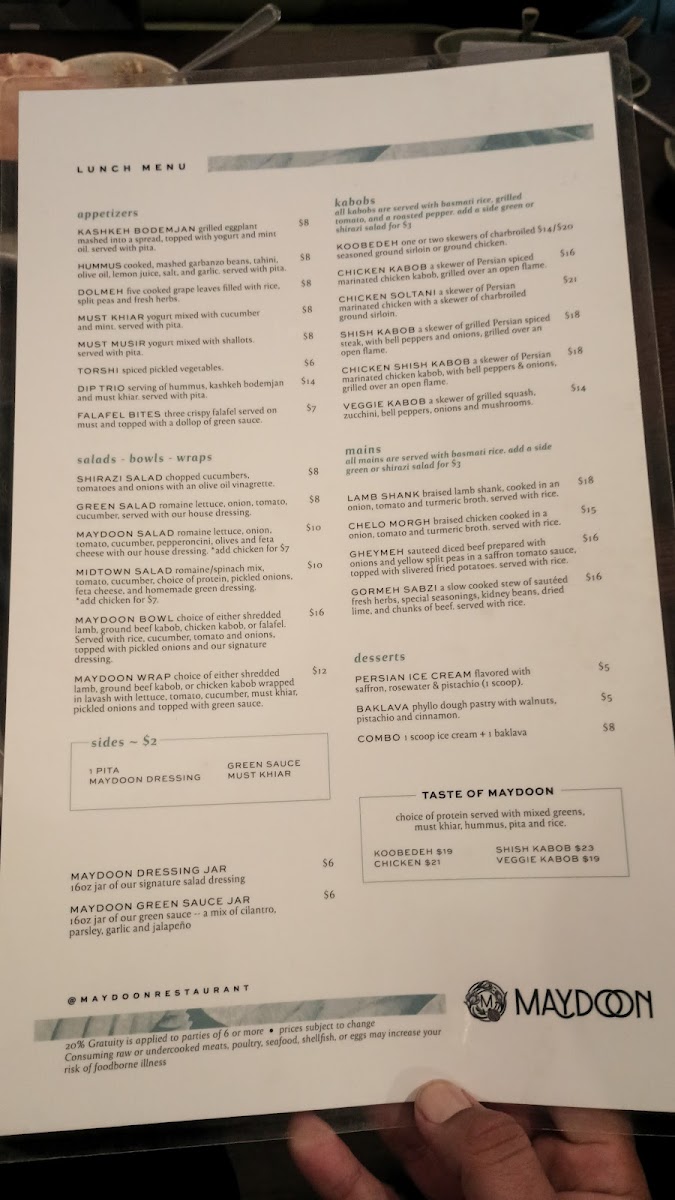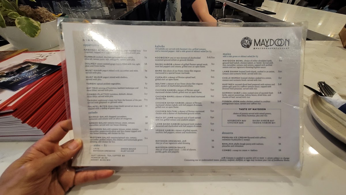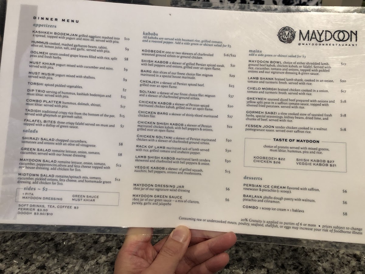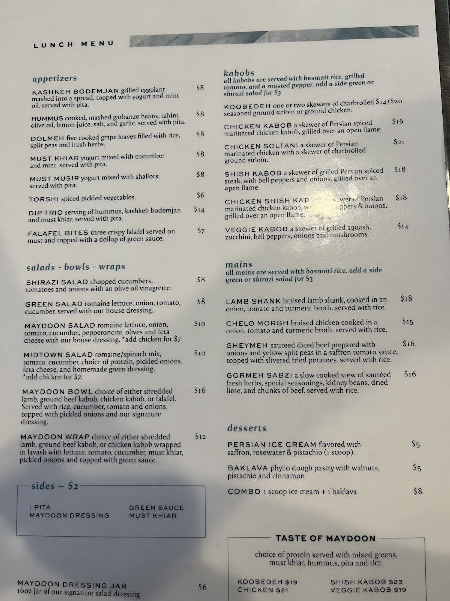 Maydoon Restaurant Menu