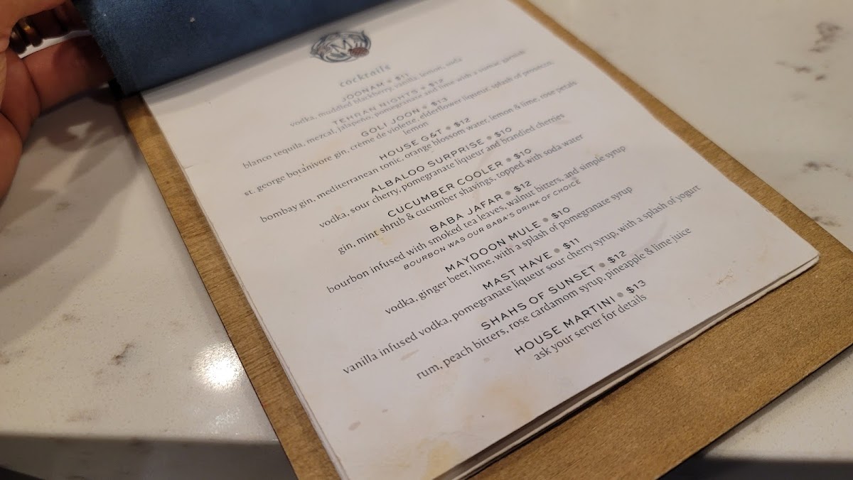 For a delightful entrée, indulge in the aromatic Zereshk Polo or experience their premium meal with the Taste of Maydoon, which beautifully pairs proteins with fresh greens and hummus. Each dish is made with fresh ingredients, and the bustling ambiance adds to the excitement of a shared meal.